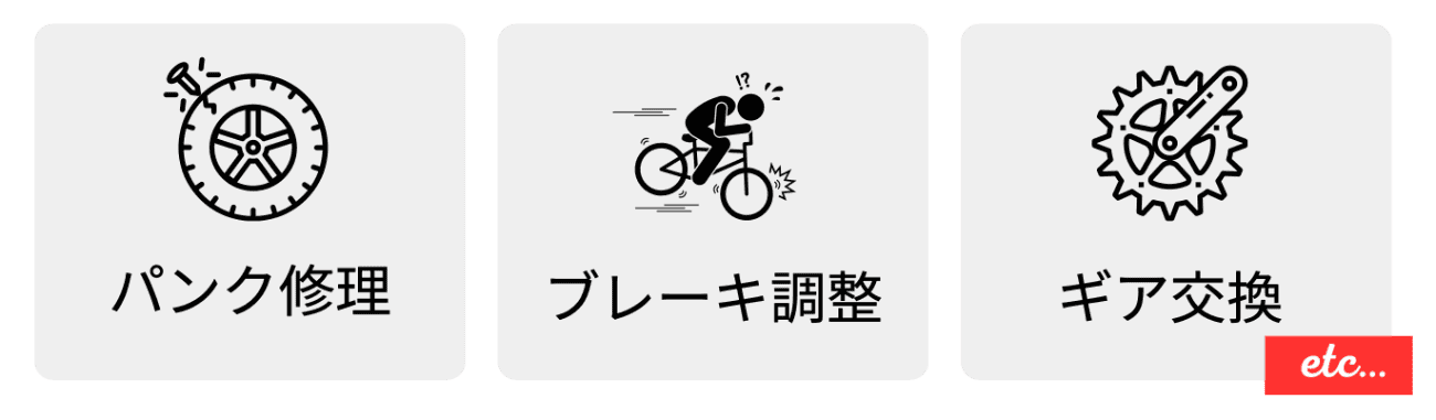 お客様の自転車の具体的な問題に応じて、適切な修理やメンテナンスを行います。ご依頼やご質問がございましたら、お気軽にお問合せください。