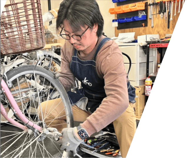 安全整備士としての専門知識と技術を持つスタッフが、お客様の自転車の修理やメンテナンスを行います。安心してご依頼いただけることをお約束いたします。