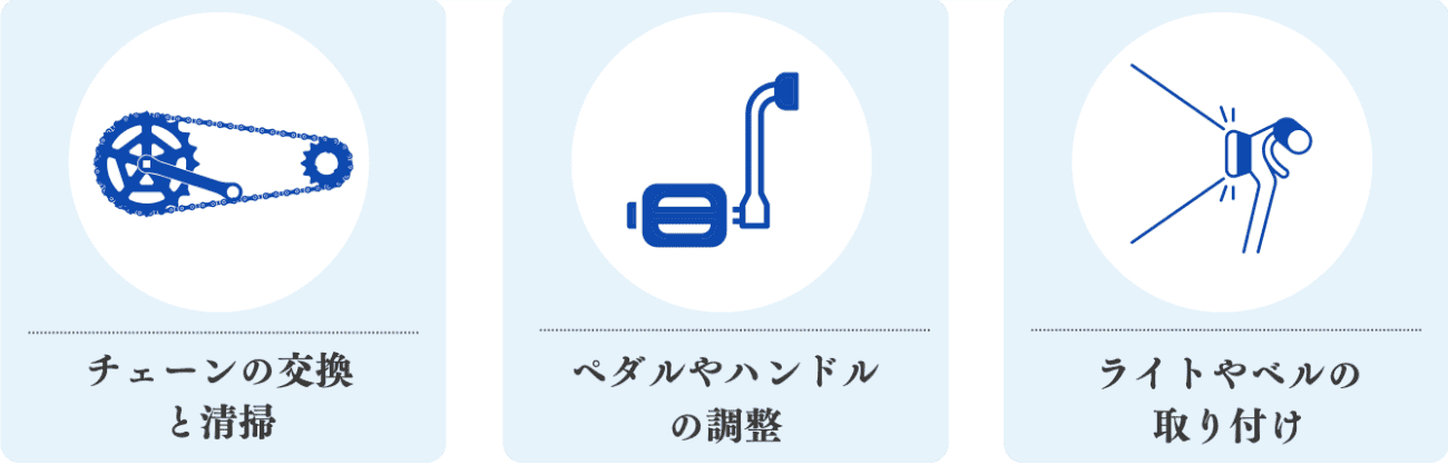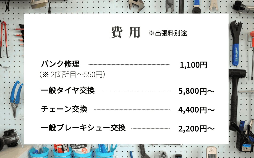 自転車の故障やメンテナンスにお悩みの方に、自宅やオフィスなどご指定の場所まで出張して修理を行います。