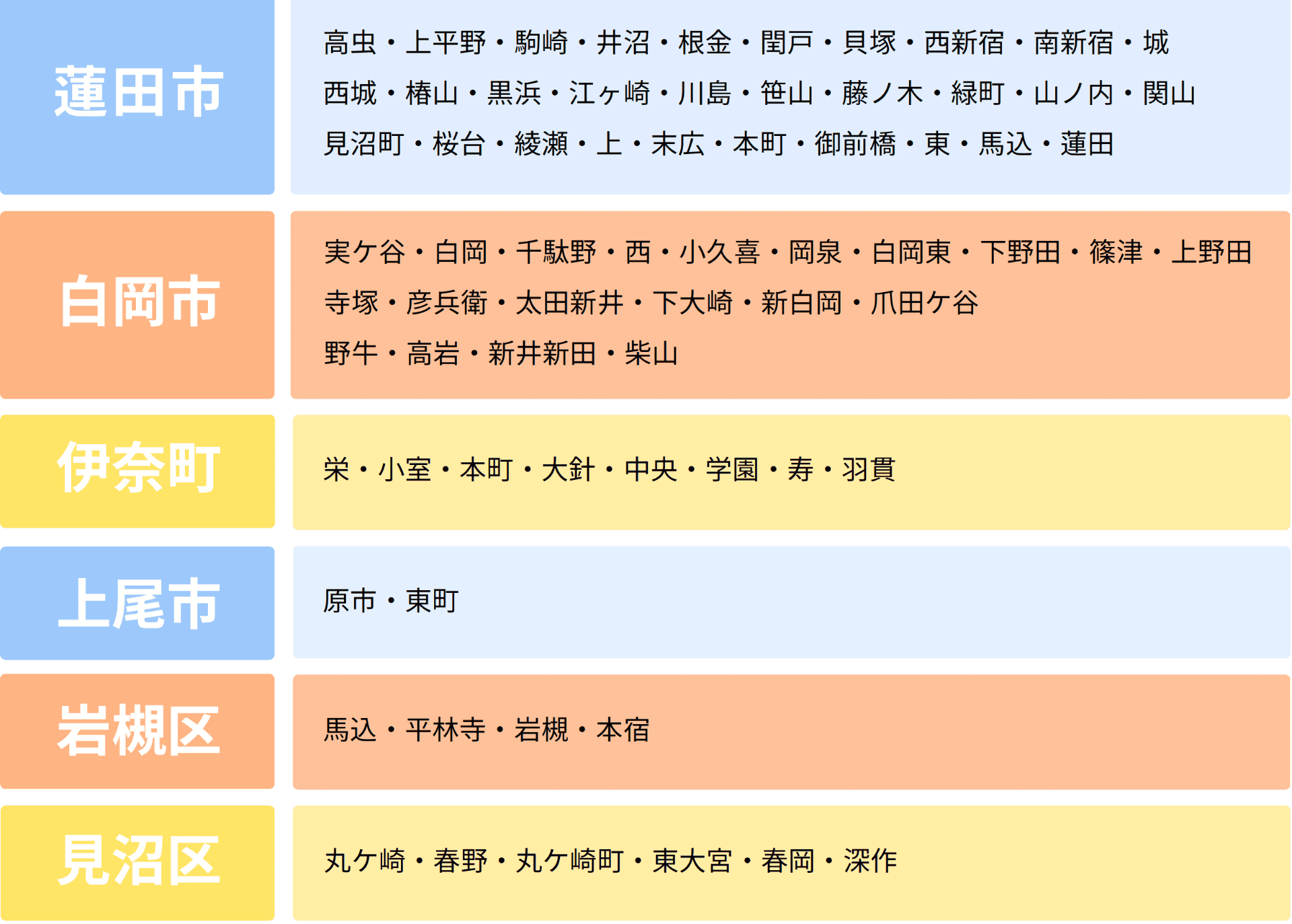 これらの地域にお住まいの方々に対して、便利な出張修理サービスを提供しています。